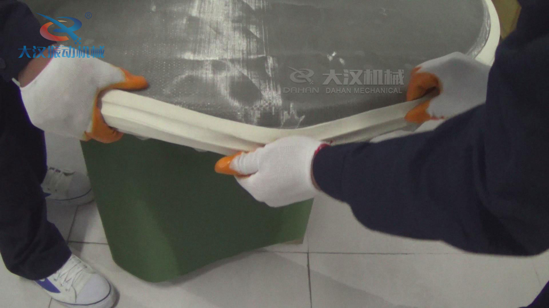 1.旋振篩底框安裝小V型密封件。