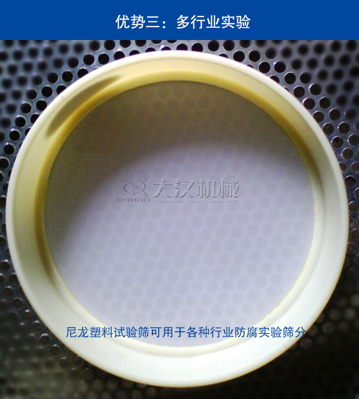 尼龍塑料試驗篩采用PVC加厚塑料邊框、防腐蝕尼龍網材質,它主要于不能和金屬接觸的物料,避免物料因遇到金屬而造成的化學反映。篩孔精細,廣泛用于多行業的實驗篩分工作。下面小編就為您說一說尼龍塑料試驗篩在實驗中有什么優勢?