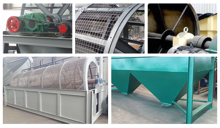 YTS圓筒回轉篩根據不同分級要求,其分級級數一般從細到粗為1-4節,物料從細到粗分別從一節到后一節篩網篩出,大于后一節篩網孔的物料從出料口排出。通過變速減速系統使篩分筒在一定轉速下旋轉,物料自上而下通過篩分筒得到分離,細料從篩分筒前端下部排出,粗料從篩分筒下端尾部排出。