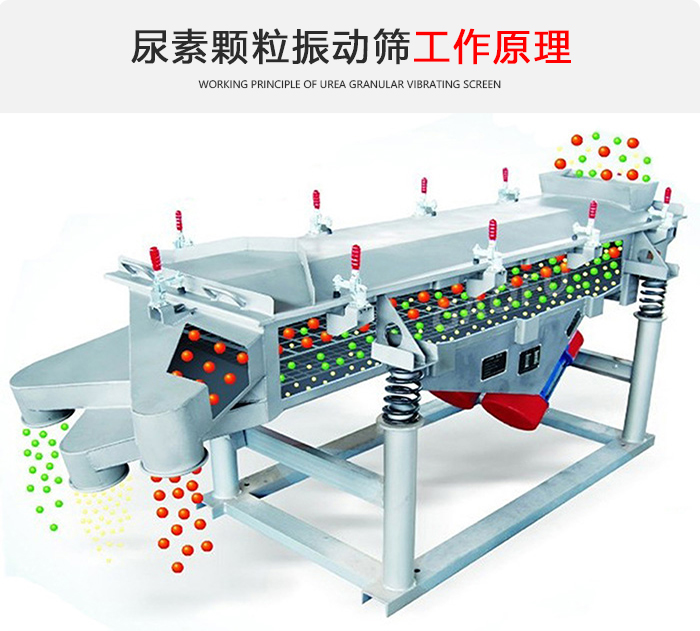 尿素顆粒振動(dòng)篩有:DZSF-515、DZSF-520、DZSF-1020、DZSF-1025、DZSF-1030、DZSF-1035、DZSF-1540等長(zhǎng)、寬、高不同的機(jī)型。